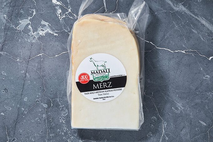 İçeriğindeki pastörize keçi sütü, şirden mayası ve kaya tuzu ile peynir tabaklarınızda altın renginde dış kabuğu olan Merz Artizan Keçi Peynirine mutlaka yer açmanızı tavsiye ediyoruz.
